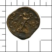 VICTORIA AVG. Victoria r. schreitend, in der rechten Hand einen Lorbeerkranz, einen Palmzweig in der linken, über die Schulter gelegt. Beiderseits S - C. |