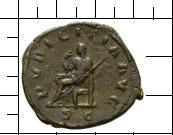 PVDICITIA AVG // S C. Pudicitia l. auf Thron sitzend, mit Schleier, mit der rechten Hand den Schleier zur Seite ziehend, in der linken ein Zepter. |