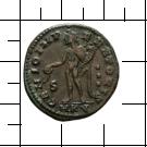 GENIO IMPERATORIS. Genius l. stehend, mit Modius, in der rechten Hand eine Schale, ein Füllhorn in der linken. Beizeichen S / [drei vertikale Punkte] // MKV.