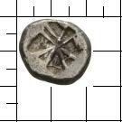 Quadratum incusum, im vertieften Feld: konvergierende Linien, die sich im Zentrum kreuzen.