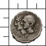 D P P. Köpfe der Penaten nach l., beide mit Lorbeerkranz, in einem Perlkreis. |