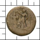 [BPRETTIΩΝ]. Nike steht n. l. mit Palmzweig, bekränzt ein Tropaion, dazwischen ein Haken/eine Öse als Beizeichen. |