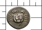 eme [in lykischer Schrift]. Krebs in punktiertem Quadratum incusum.