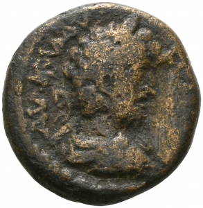Rückseite: ΕΠΙΦ[ΑΝΕΩΝ] - CΝς [= Jahr 256, d. i. 188/189 n. Chr.]. Büste der Stadttyche nach r. mit Mauerkrone und Schleier, im Gewand.