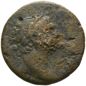 Reverse: ΦΛΑΥΙΟΠΟΛΕΙΤΩΝ ΕΤ / ΒΜ [= Jahr 42, d. i. 115/116 n. Chr.]. Zwei Dioskuren frontal stehend, die Köpfe einander zugewandt, jeweils eine Lanze in der r. Hand haltend. Mondsichel im Feld.