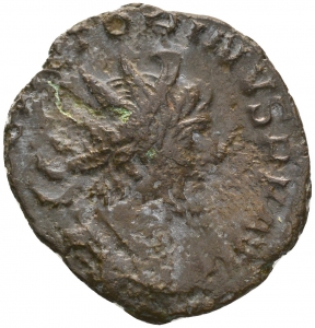 Obverse: IMP C VICTORINVS P F AVG. Büste des Victorinus nach r., mit Strahlenkrone, in Panzer und Paludamentum.