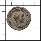 Doppeldenar (ANT)  Doppeldenar (ANT)Das von Kaiser Caracalla (Alleinherrschaft 211–217 n. Chr.) im Jahre 215 eingeführte neue Silbernominal im Wert von zwei Denaren. Entspricht im Gewicht zu Anfang anderthalb alten Denaren (ungefähr 5 g), unterliegt aber im Verlauf des 3. Jhs. n. Chr. einem zunehmenden Verlust an Gewicht und Feinheit. Äußeres Kennzeichen sind der Kaiserkopf mit der Strahlenkrone bzw. die Kaiserinnenbüste auf der Mondsichel auf der Vorderseite. Kaiser Aurelianus versucht 274 n. Chr. eine Reform des zwischenzeitlich zur Kupfermünze abgesunkenen Doppeldenares (auch Aurelianus genannt). Die dort in Erscheinung tretenden Wertkennzeichen XX I bzw. K A (20 zu 1) sind in ihrer Bedeutung noch umstritten (gleich 20 Sesterzen bzw. 5 Denare oder doch eher Hinweis auf Feingehalt (20 unedle Teile auf eines aus Silber)). Mit der Münzreform des Diocletianus endete die Geschichte des Doppeldenares. Die Bezeichnung „Antoninianus“ (abgeleitet vom offiziellen Namen des Caracalla) ist eine moderne Schöpfung in Ermangelung einer überlieferten antiken Bezeichnung.